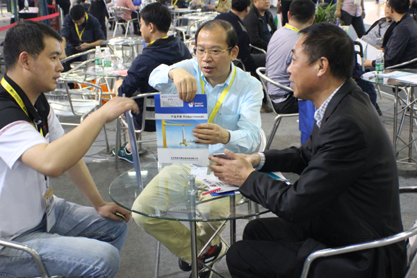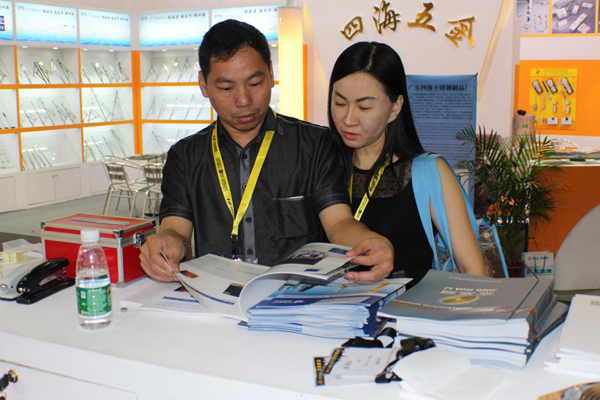 來賓翻閱公司產(chǎn)品手冊(cè)